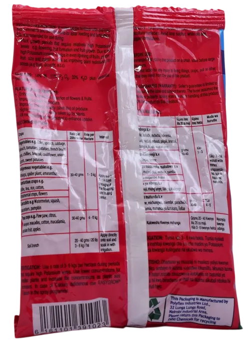 It is a foliar recommended for use during plant growth period that require relatively high potassium levels. eg flowering ,fruit formation and fruit growth.