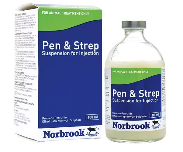 Penstrep is a broad-spectrum antibiotic injection used in livestock to treat infections caused by bacteria susceptible to penicillin and streptomycin.