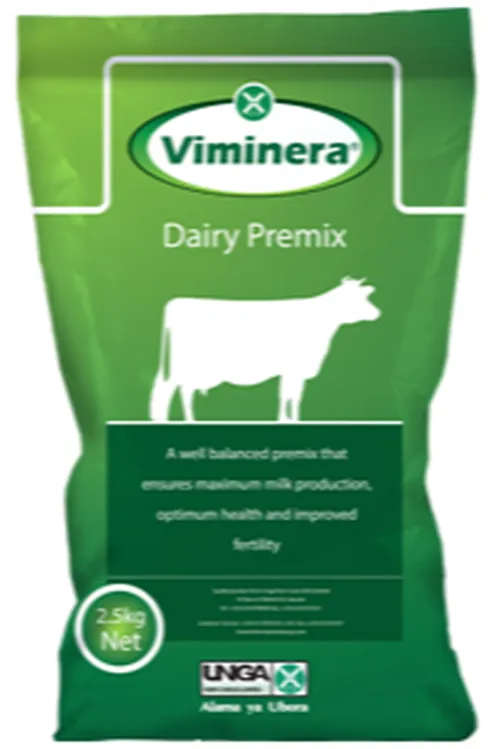 Premix Dairy Formula is a concentrated blend of essential vitamins, minerals, and trace elements designed to supplement dairy cows’ diets. It helps improve milk production, boost cow health, and support reproductive efficiency, ensuring that dairy cows receive all the nutrients needed for optimal performance. This product is typically mixed with other feed components, such as dairy meal, silage, or pasture, to create a balanced ration.