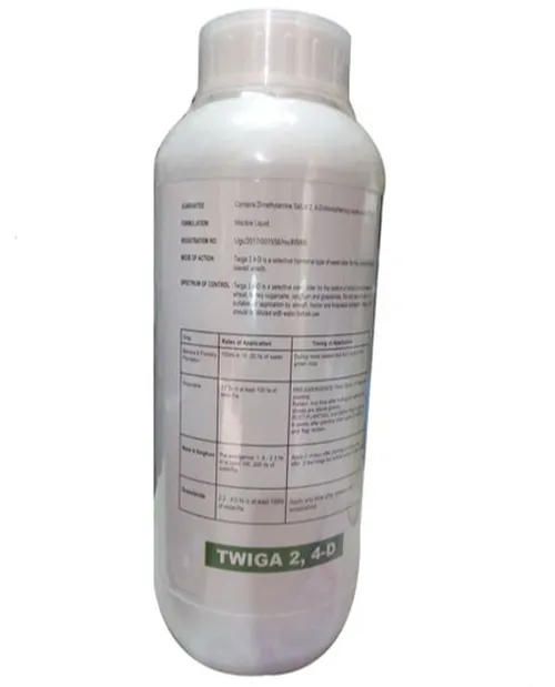 TWIGA 24D is a selective systemic herbicide commonly used to control broadleaf weeds in various crop fields.