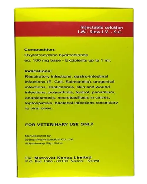 Oxytetracycline 10% is an injectable antibiotic solution used in veterinary medicine to treat a variety of bacterial infections in animals.